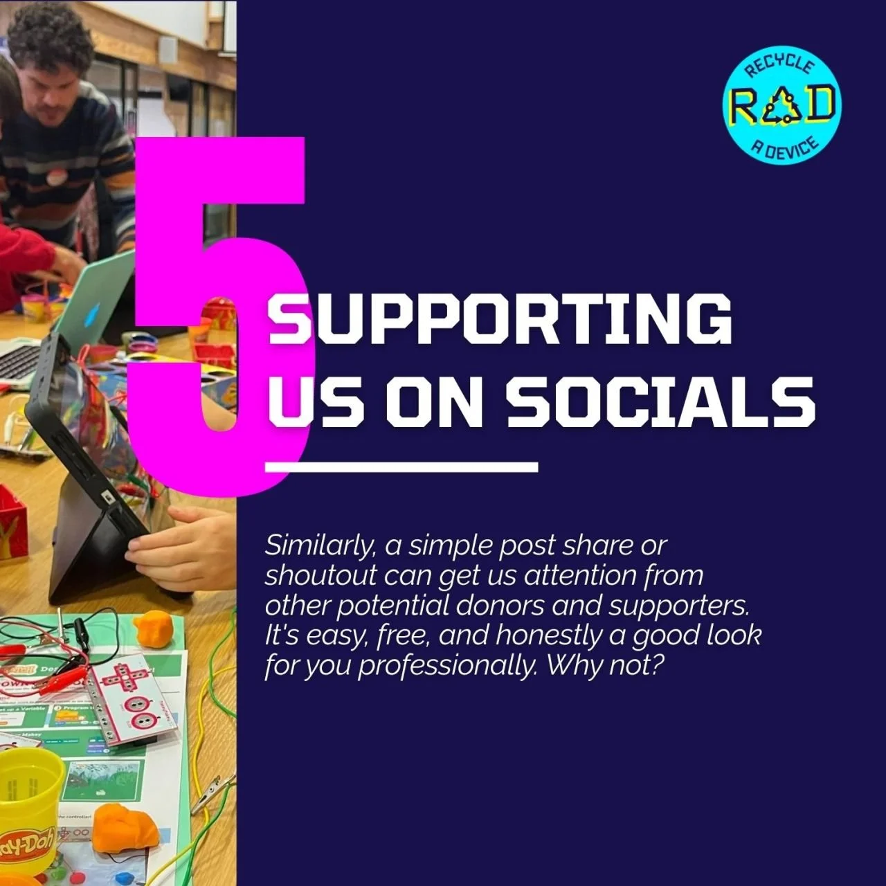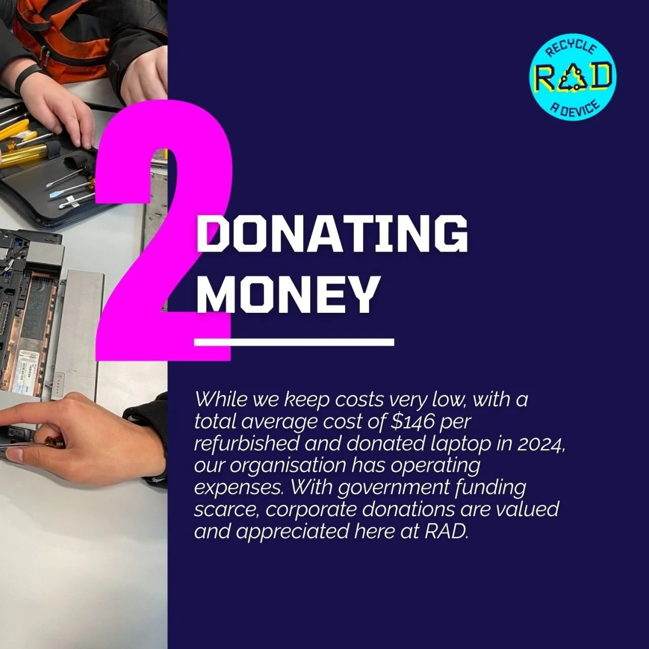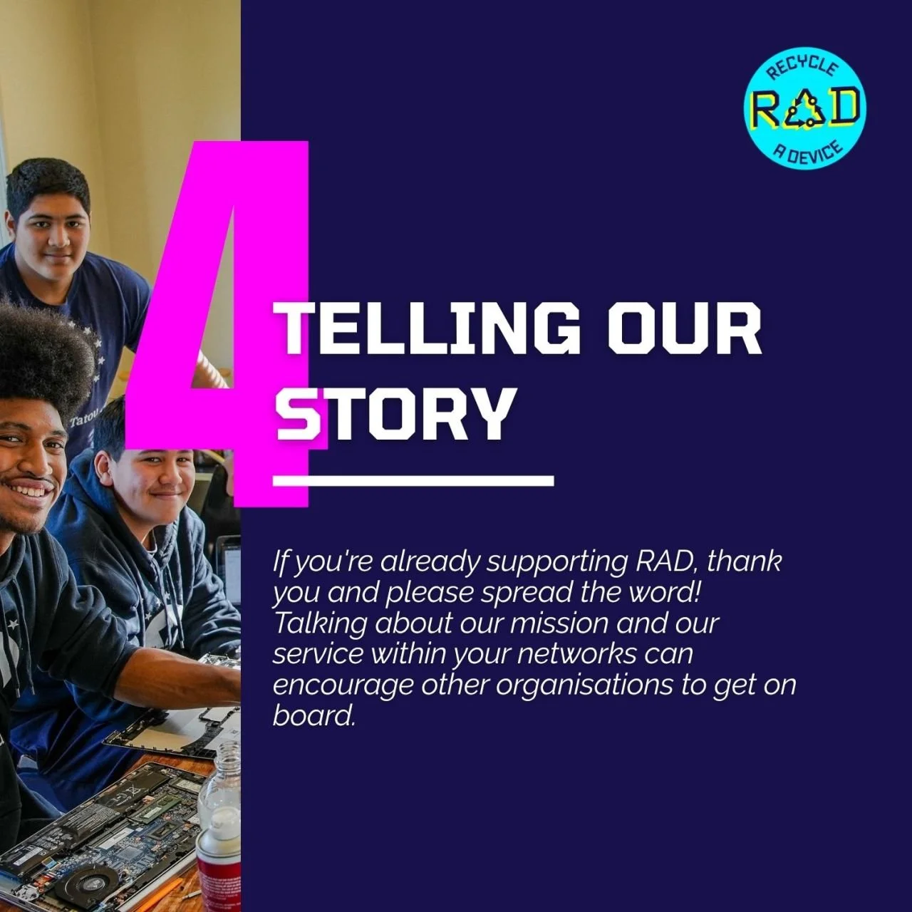 Radical change happens when we shift systems - not just respond to symptoms. That means partnering with corporates, schools, communities, and government to embed device reuse, lifecycle management, digital inclusion and sustainability into everyday business practices. Our vision is bold: for RAD to one day no longer be needed, because digital opportunity is universal. Until that future arrives, we’ll keep working.